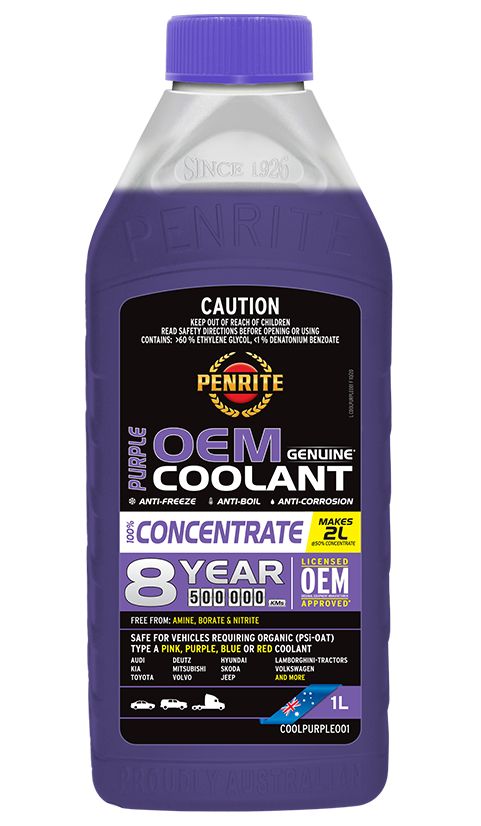 Penrite Coolant Concentrate Purple 1L is a high-performance antifreeze designed to provide superior protection against corrosion, overheating, and freezing in your vehicle’s cooling system. Its advanced formula ensures optimal heat transfer and long-lasting durability, making it ideal for a wide range of engines. Suitable for use in both petrol and diesel vehicles, this concentrate helps maintain engine efficiency and reliability under extreme conditions. Mix with water to achieve the desired protection level and extend the life of your cooling system components.